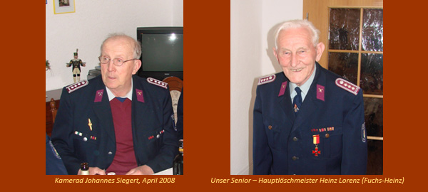 Leiter: Dietmar Frey Nach der aktiven Dienstzeit finden sich die meisten Kameraden in der Alters- und Ehrenabteilung zusammen. Sie unterstützen die Arbeit der Feuerwehr in vielfältiger Weise. Besonders der Traditionspflege und der gelebten Kameradschaft gehört ihre Aufmerksamkeit. ![]() ![]() |