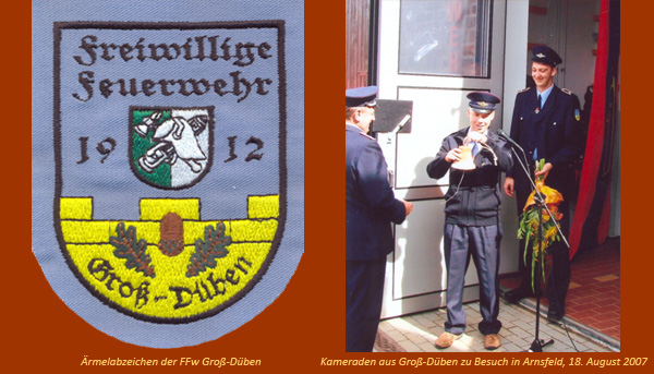 Zwischen der Freiwilligen Feuerwehr Arnsfeld und den Wehren in Groß-Düben (Lausitz) und Rocov/Horany (Nordböhmen) bestehen seit einigen Jahren partnerschaftliche Kontakte. Regelmäßige Besuche und die Teilnahme an Veranstaltungen der Partner sind Gelegenheiten zum Gedankenaustausch. ![]() ![]() |
